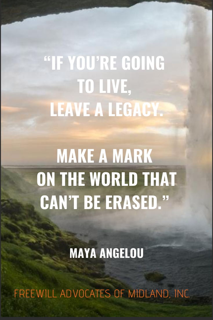 Recently I wrote a blog article about my aunt, Doris V. Richardson, who was an educator with the Midland Independent School District for 36 years. Aunt Dottie’s story is rich with the wisdom and inspiration that I will draw from as we do the work of Freewill Advocates of Midland, Inc.